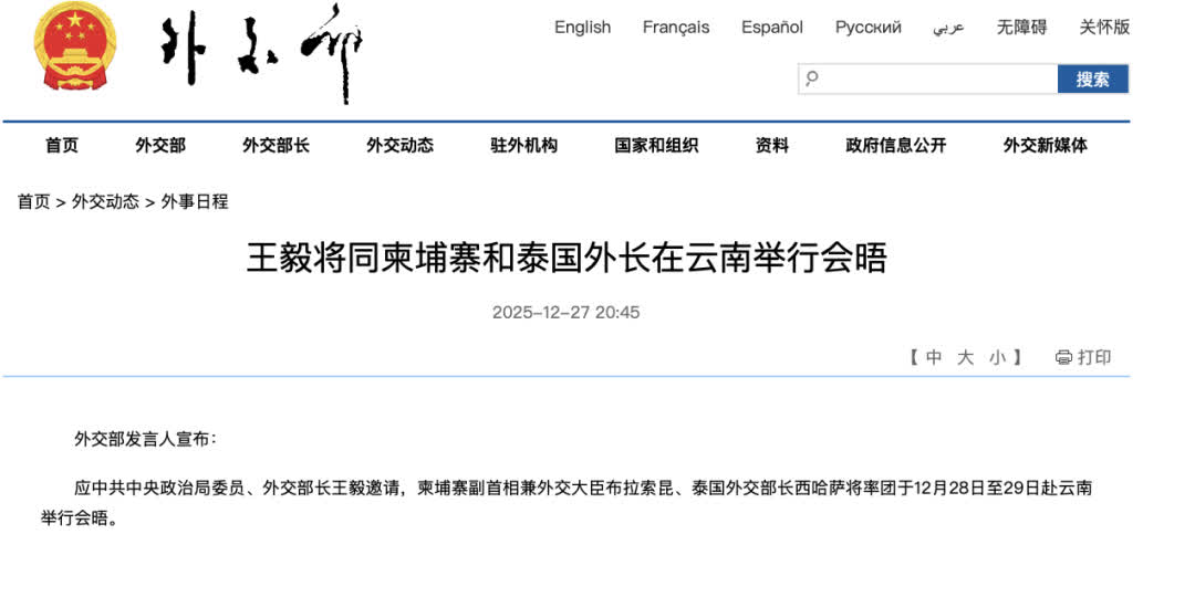 王毅將同柬埔寨咊(he)泰國外長在(zai)雲南(nan)舉行會晤